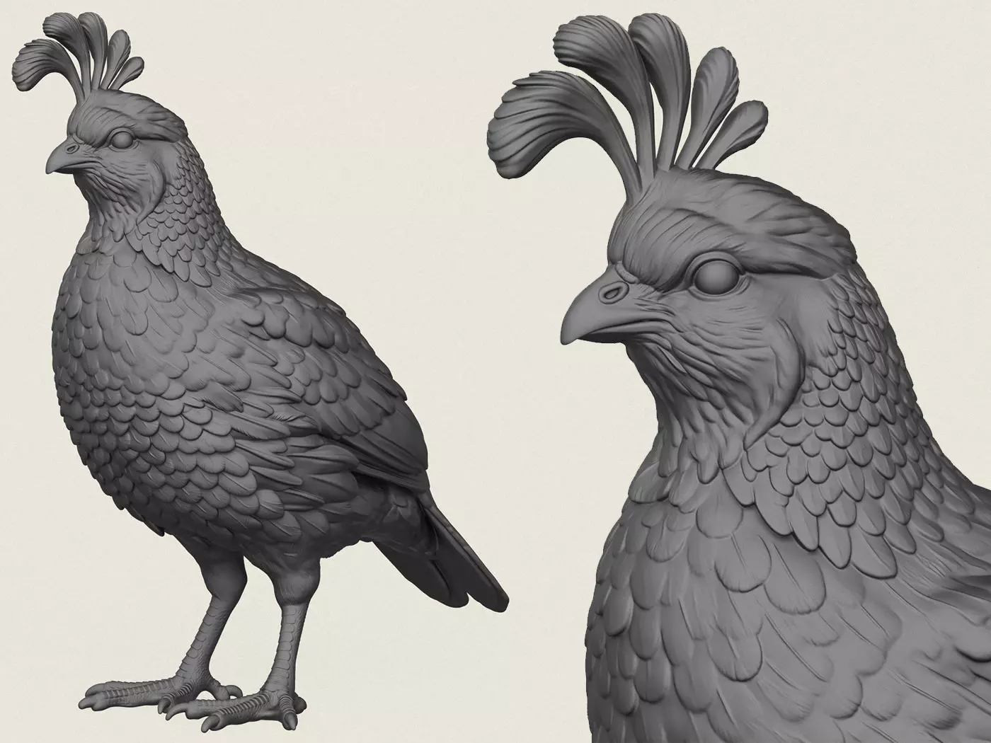 Quail Bird, Print Ready 3D Model.
